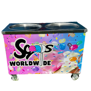 Package B offers an exciting and interactive ice cream experience with the option for your guests to enjoy rolled, smashed, or scooped ice cream. Scoops Worldwide brings out our state-of-the-art cold plate machines (at least two, with some featuring double plates) to ensure the freshest ice cream creations right at your event. With the help of two dedicated servers, guests can choose their ice cream flavor and toppings, which will then be expertly infused into their scoops, quickly smashed together for a fast fix, or rolled to perfection using liquid ice cream for a stunning presentation.